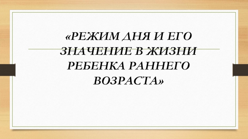 Слайд 2«Режим дня и его значение в жизни ребенка раннего возраста»