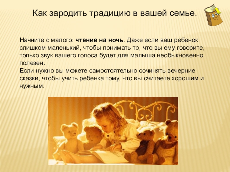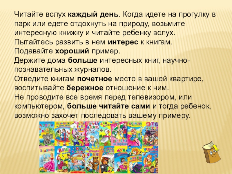 Слайд 23 Прививайте ребенку интерес к чтению с раннего детства.