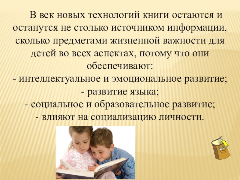 информации, сколько предметами жизненной важности для детей во всех аспектах, потому что они обеспечивают: