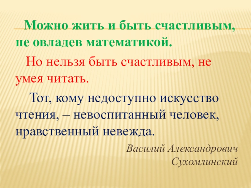 Слайд 2 Можно жить и быть счастливым, не овладев математикой.
