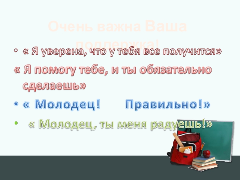Главное, чтобы ребенок был рад полученному результату, решенной задаче, усвоенному правилу…