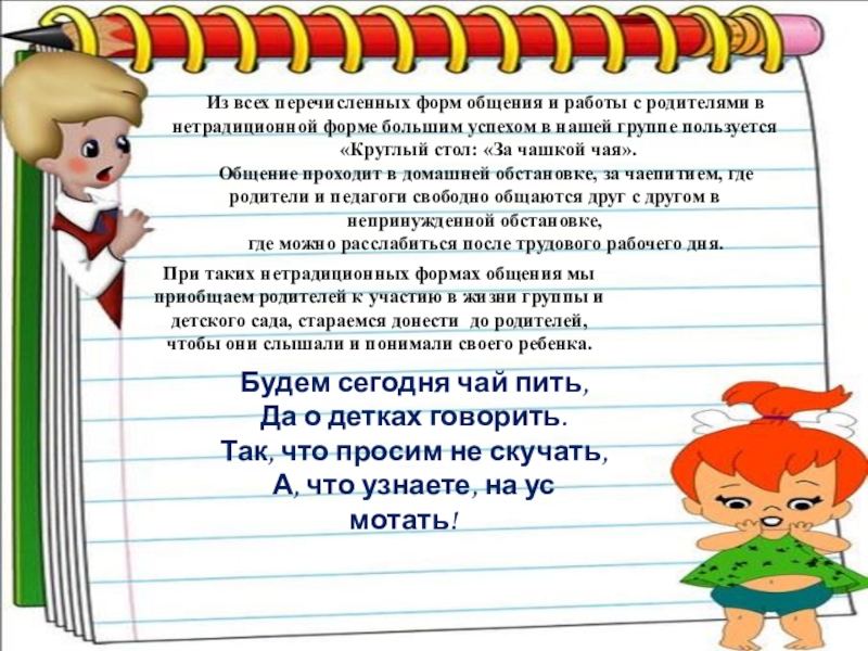 При таких нетрадиционных формах общения мы приобщаем родителей к участию в жизни группы и детского сада, стараемся донести до родителей, чтобы они слышали и понимали своего ребенка.