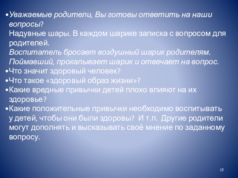 Слайд 15Уважаемые родители, Вы готовы ответить на наши вопросы?