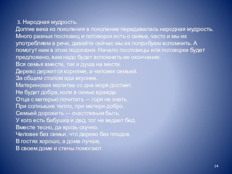 Слайд 14 3. Народная мудрость.