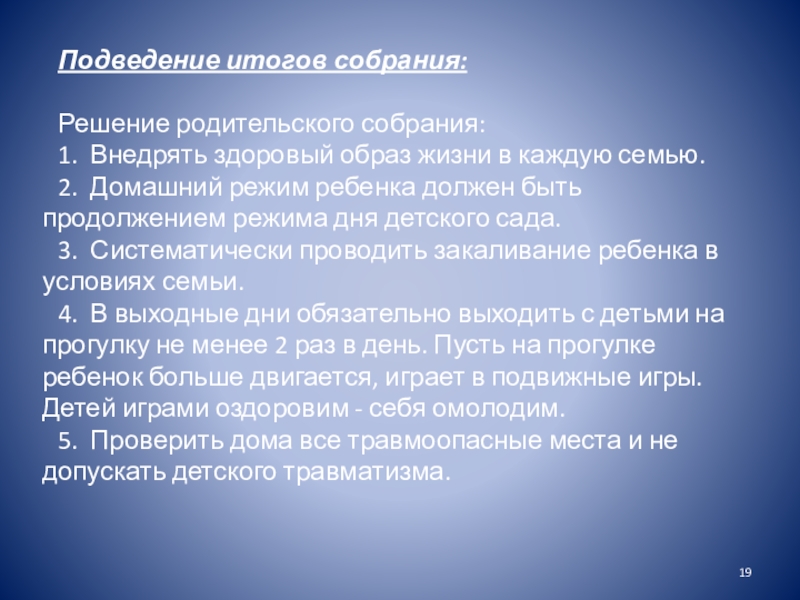 Слайд 19Подведение итогов собрания: