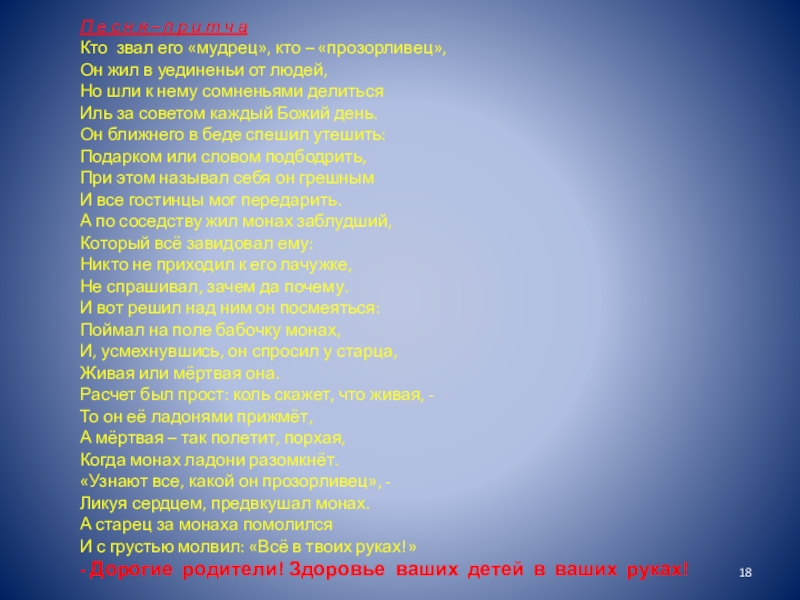 Слайд 18П е с н я – п р и т ч