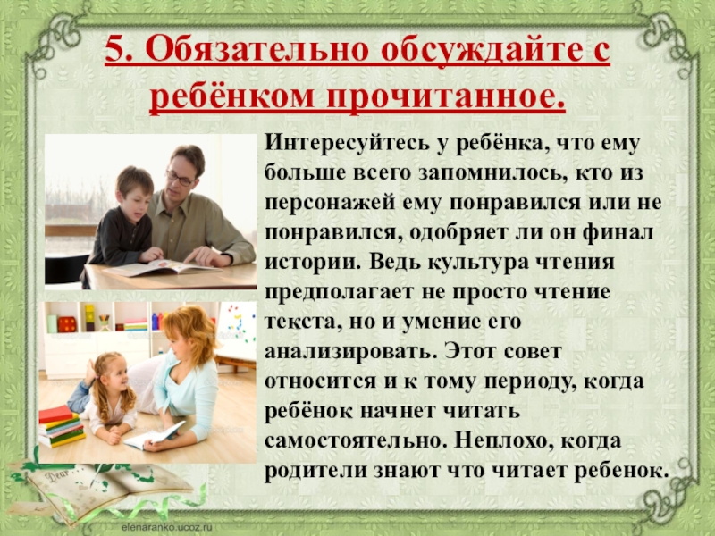Слайд 125. Обязательно обсуждайте с ребёнком прочитанное.