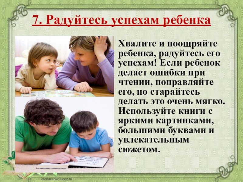 Хвалите и поощряйте ребенка, радуйтесь его успехам! Если