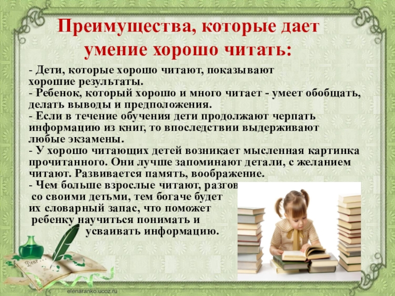 Слайд 5Преимущества, которые дает умение хорошо читать: