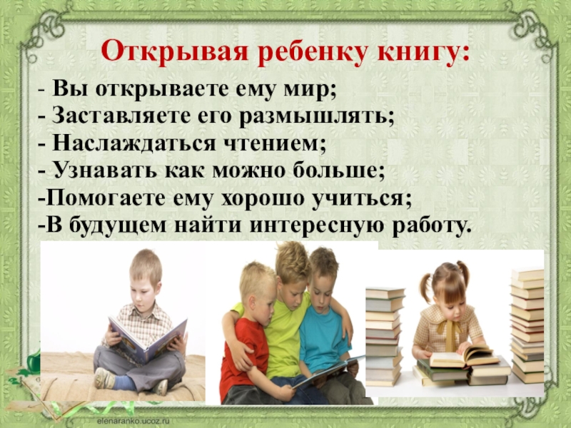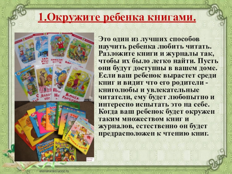 Когда ваш ребенок будет окружен таким множеством книг и журналов, естественно он будет предрасположен к чтению книг.