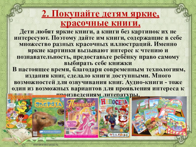 Слайд 92. Покупайте детям яркие, красочные книги.
