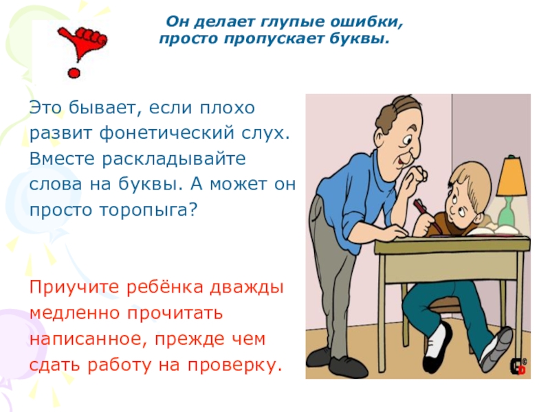 Не пропускайте трудности. При необходимости обращайтесь за помощью к специалистам: психологу, логопеду, окулисту.