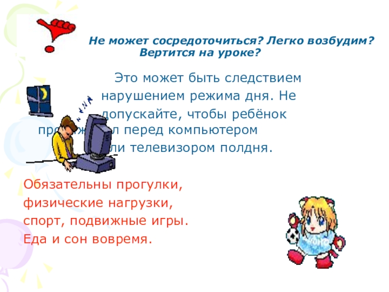 допускайте, чтобы ребёнок просиживал перед компьютером