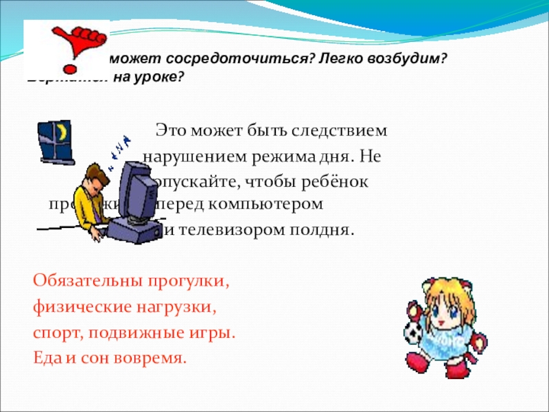 допускайте, чтобы ребёнок просиживал перед компьютером