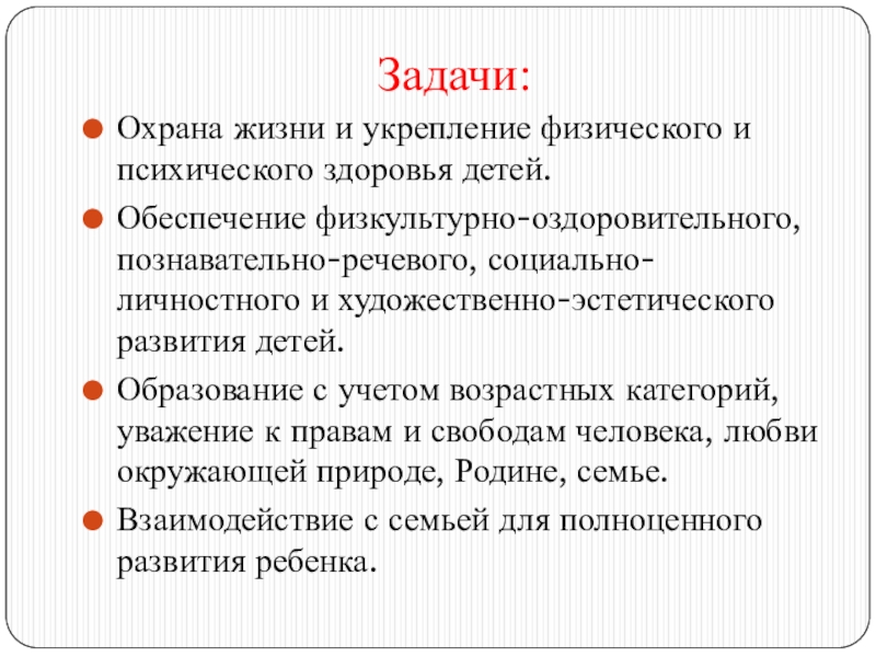Охрана жизни и укрепление физического и психического здоровья детей.