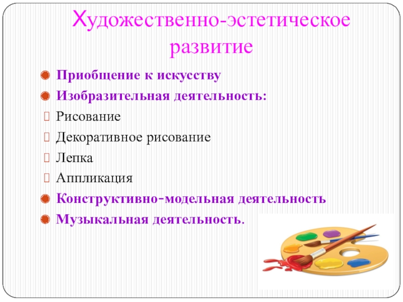 Слайд 23Художественно-эстетическое развитие