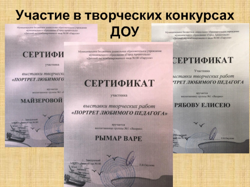 Слайд 20Участие в творческих конкурсах ДОУ