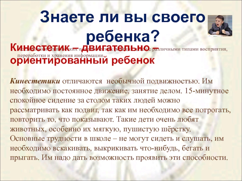 Кинестетик – двигательно – ориентированный ребенок