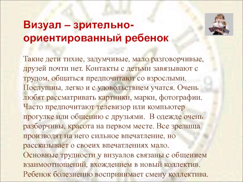 Слайд 4Визуал – зрительно-ориентированный ребенок