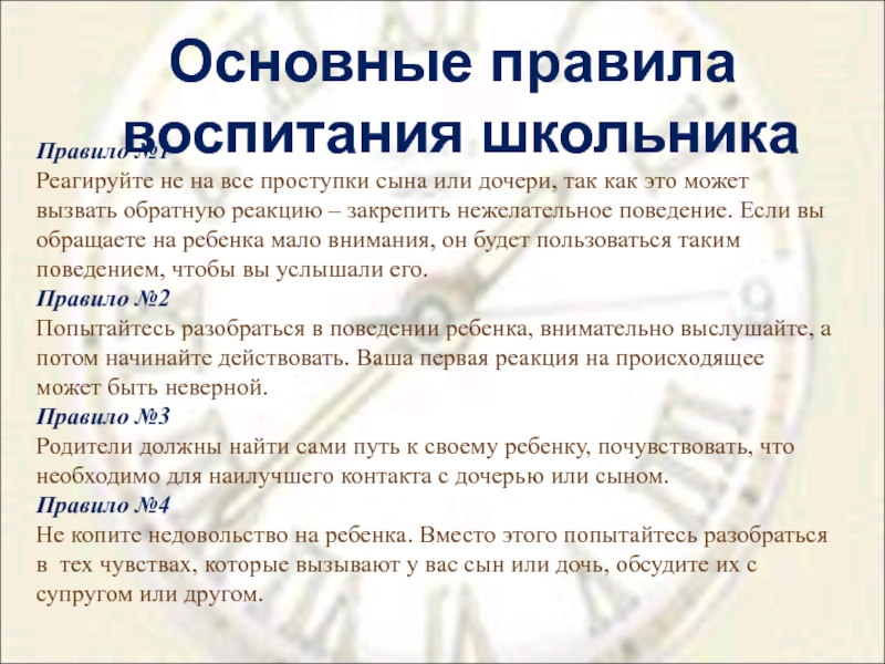 Не вступайте с ребенком за власть. Установите приемлемые правила и запреты. Если их немного, но они тверды и логичны, то родитель, убеждая ребенка, может опираться на них. Выслушайте ребенка, а потом принимайте решение.