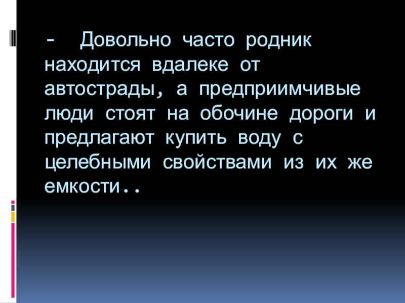 Слайд 24- Довольно часто родник находится вдалеке от автострады, а предприимчивые люди
