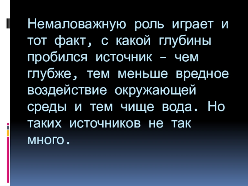Слайд 18Немаловажную роль играет и тот факт, с какой глубины пробился источник
