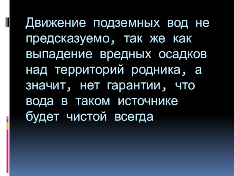 Слайд 20Движение подземных вод не предсказуемо, так же как выпадение вредных осадков