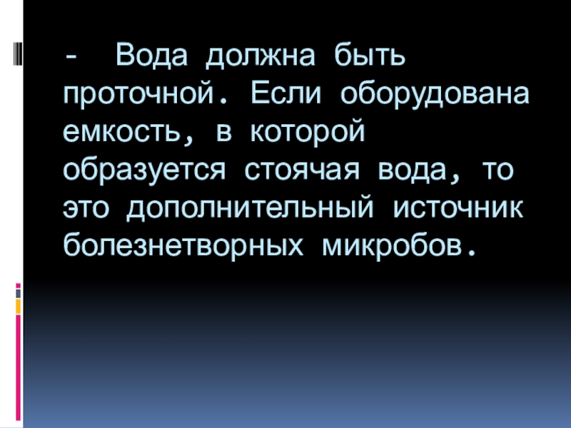 Слайд 23- Вода должна быть проточной. Если оборудована емкость, в которой образуется
