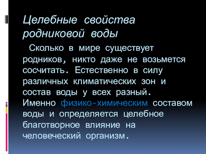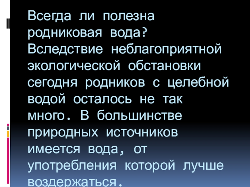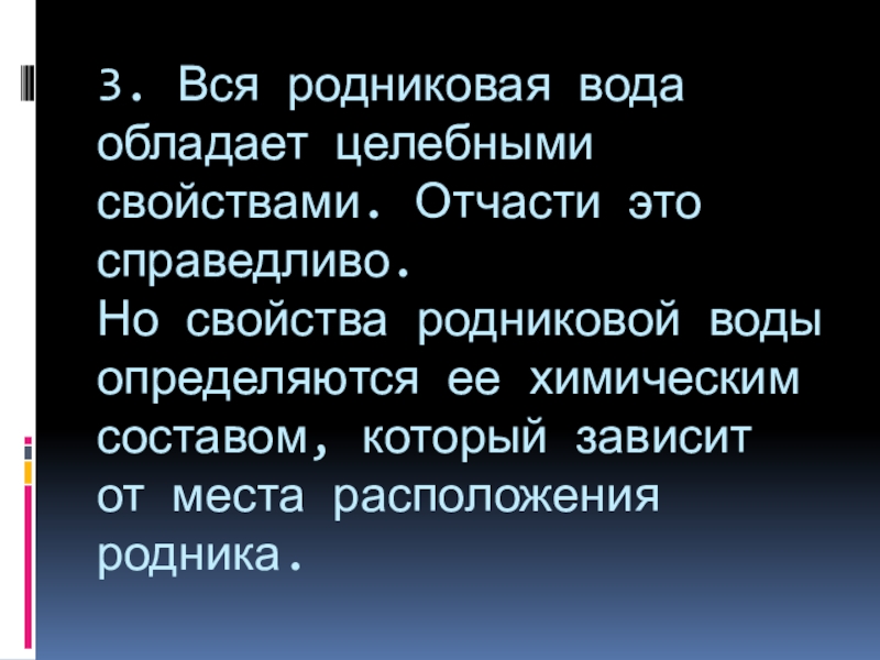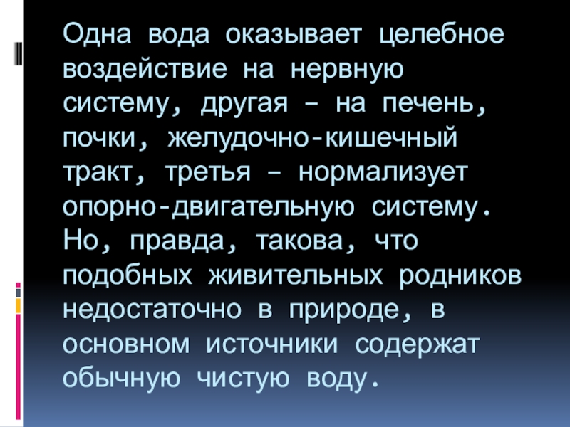 Слайд 283. Вся родниковая вода обладает целебными свойствами. Отчасти это справедливо.