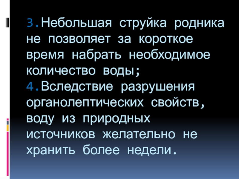 Слайд 93.Небольшая струйка родника не позволяет за короткое время набрать необходимое количество