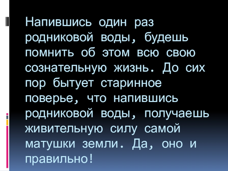 Слайд 3Напившись один раз родниковой воды, будешь помнить об этом всю свою