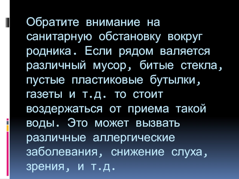 Слайд 21Обратите внимание на санитарную обстановку вокруг родника. Если рядом валяется различный