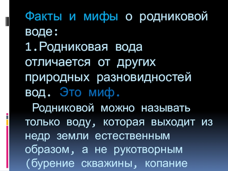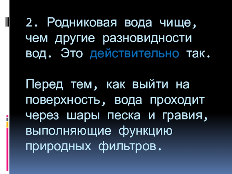 Слайд 272. Родниковая вода чище, чем другие разновидности вод. Это действительно так.