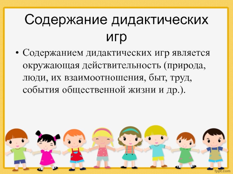 Содержанием дидактических игр является окружающая действительность (природа, люди, их