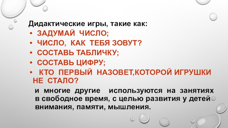 и не может быть полноценного умственного развития. Игра - это огромное светлое окно, через которое в духовный мир ребенка вливается живительный поток представлений, понятий. Игра – это искра, зажигающая огонек пытливости и любознательности.
