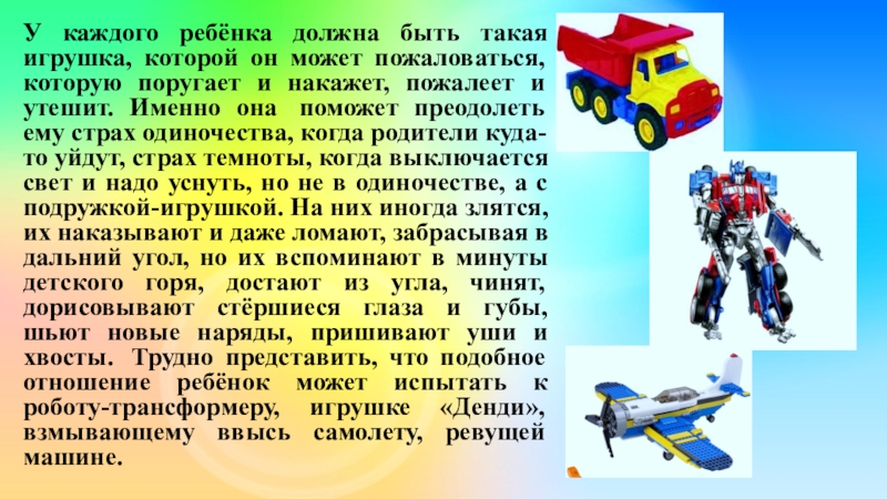 Слайд 3У каждого ребёнка должна быть такая игрушка, которой он может пожаловаться,