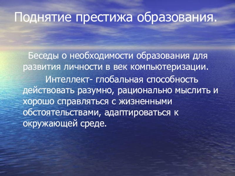 Поднятие престижа образования.    Беседы о необходимости образования для развития личности в век компьютеризации.