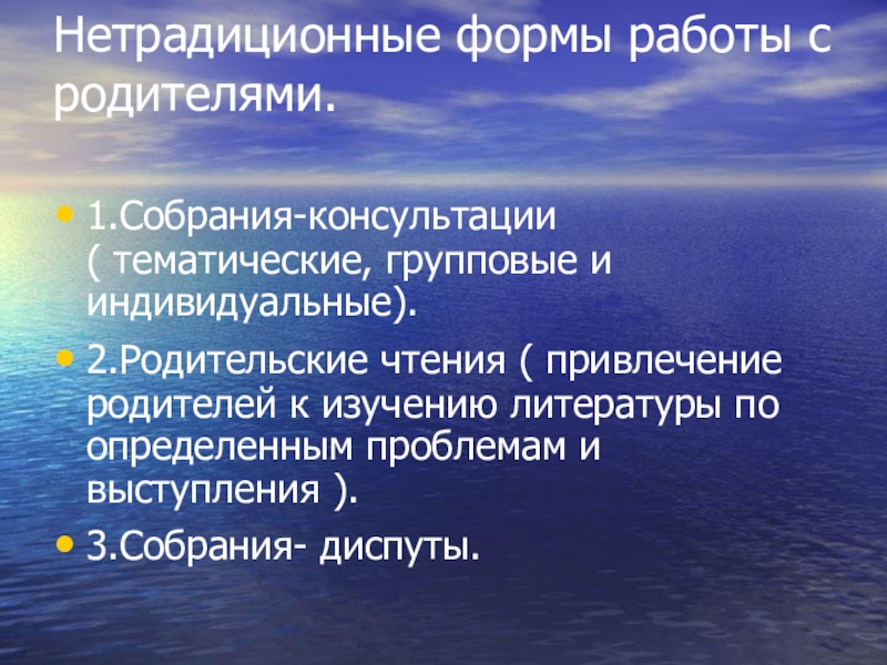 Нетрадиционные формы работы с родителями. 1.Собрания-консультации           (
