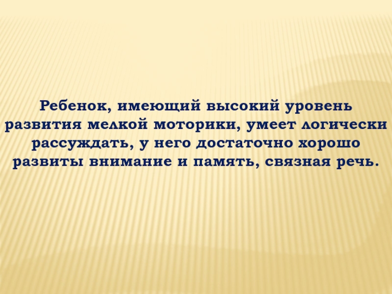 Уровень развития мелкой моторики и координации движений рук - один из показателей интеллектуального развития .