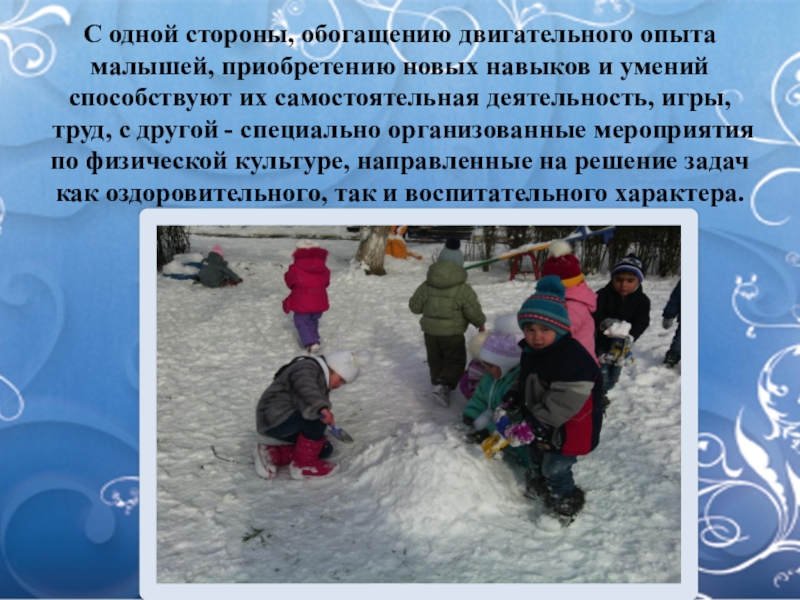человека. В этом возрастном периоде закладываются основы здоровья, правильного физического развития, формируется интерес к физической культуре и спорту, воспитываются личностные, морально-волевые качества.