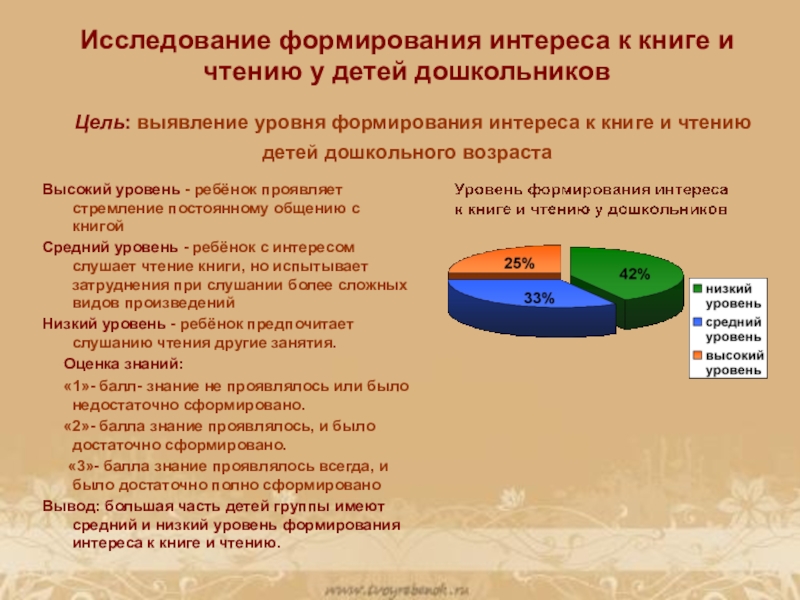 Высокий уровень - ребёнок проявляет стремление постоянному общению с книгой
