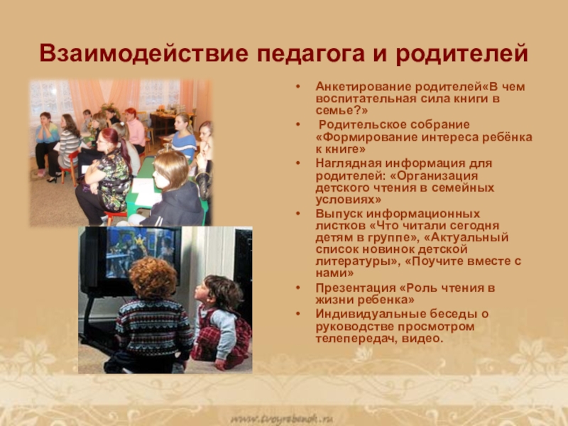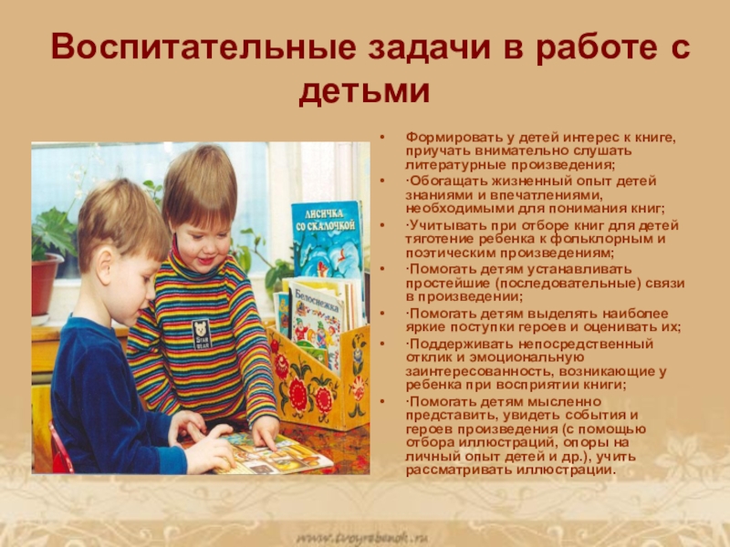 работа по формированию интереса детей к книге и чтению будет проходить совместно с родителями детей.