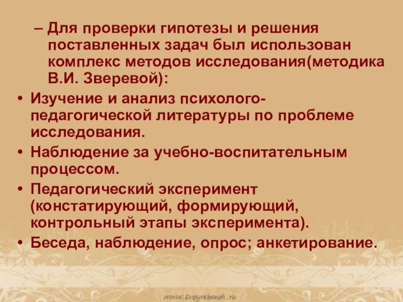 Для проведения контрольного эксперимента использовались те же диагностические методики, что и на констатирующем этапе эксперимента. Результаты оценивались по тем же показателям, что и в самом начале исследования, когда проводился констатирующий эксперимент.