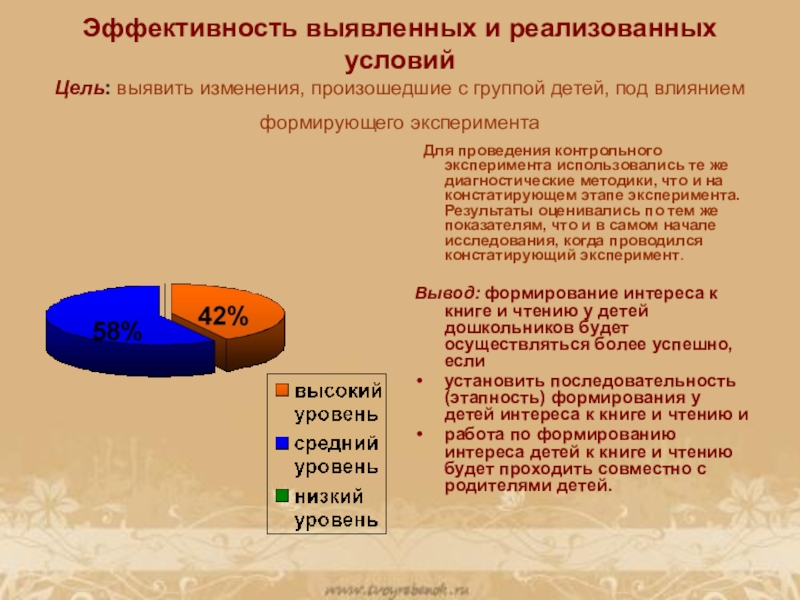 Вывод: формирование интереса к книге и чтению у детей дошкольников будет осуществляться более успешно, если