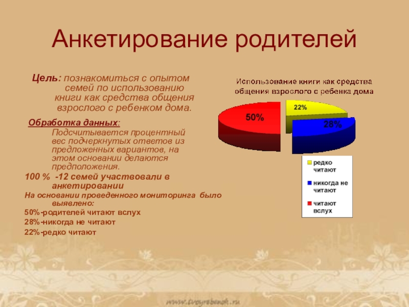 Провести анализ работы с родителями по формированию круга домашнего чтения в условиях ДОУ.