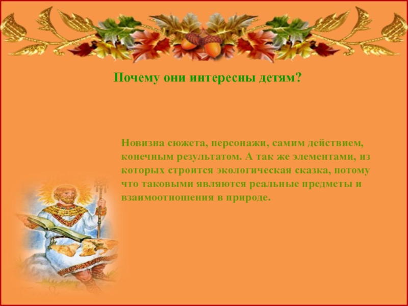 А так же элементами, из которых строится экологическая сказка, потому что таковыми являются реальные предметы и взаимоотношения в природе.