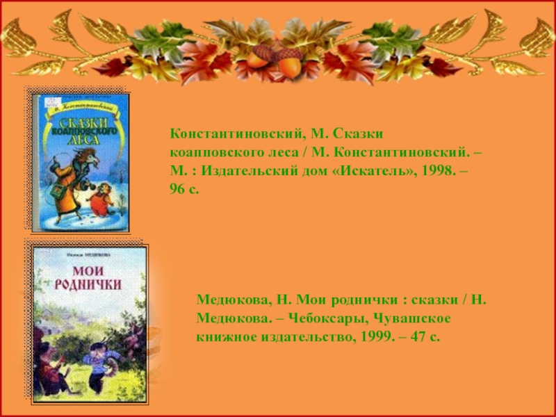 Слайд 15Константиновский, М. Сказки коапповского леса / М. Константиновский. – М. :