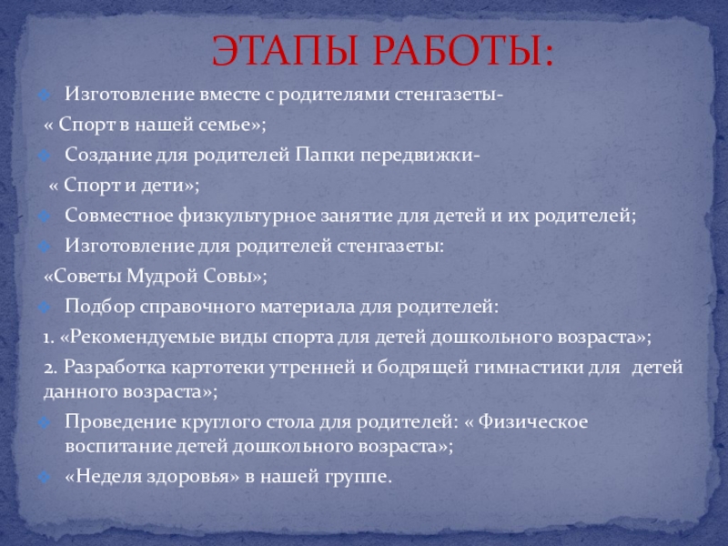 ЭТАПЫ РАБОТЫ:
