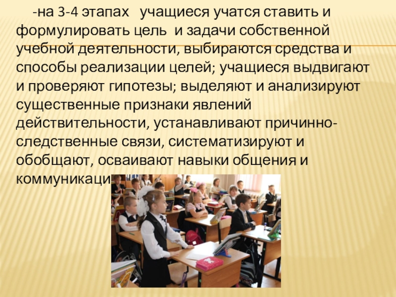 Слайд 12 -на 3-4 этапах учащиеся учатся ставить и