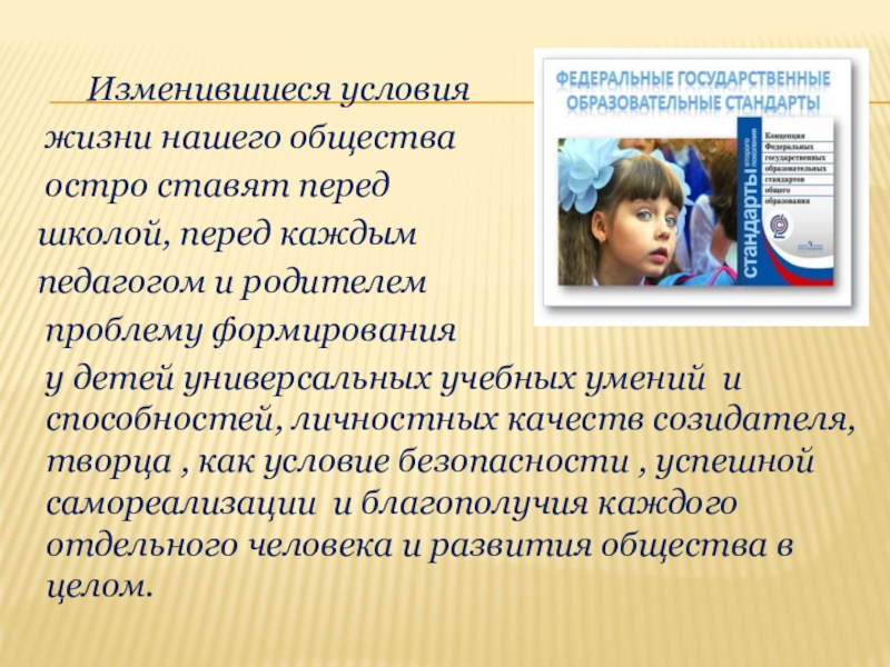 у детей универсальных учебных умений и способностей, личностных качеств созидателя, творца , как условие безопасности , успешной самореализации и благополучия каждого отдельного человека и развития общества в целом.